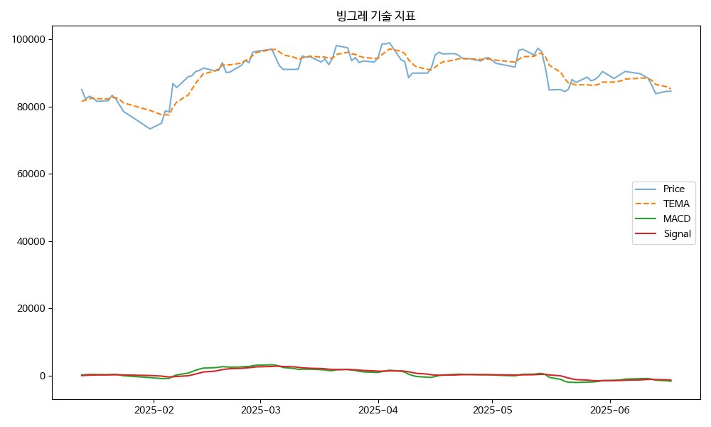 - TEMA: 현재가 100500.00, TEMA 95318.87 → 상승 흐름