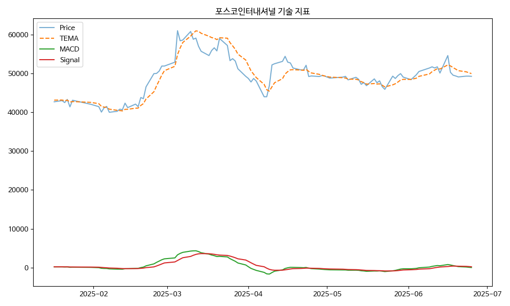 종합적으로 보았을 때, 포스코인터내셔널의 주가는 상승할 가능성이 높으며, 향후 기술 지표와 뉴스에 주목해보는 것이 좋을 것으로 판단됩니다.