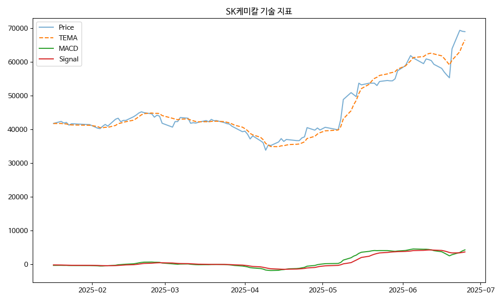 종목 분석 결과를 종합해보면, SK케미칼의 주식은 현재 상승세를 지속하고 있으며, 긍정적인 뉴스와 기술 지표들이 함께 작용하여 향후에도 주가가 상승할 가능성이 있습니다. 하지만 투자에는 항상 리스크가 따르니 신중하게 결정하는 것이 중요합니다.