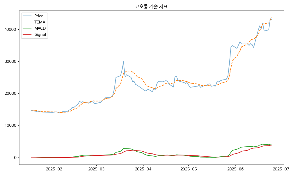- TEMA: 현재가 30950.00, TEMA 30329.53 → 상승 흐름
