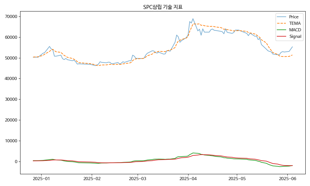 - TEMA: 현재가 55300.00, TEMA 51362.62 → 상승 흐름