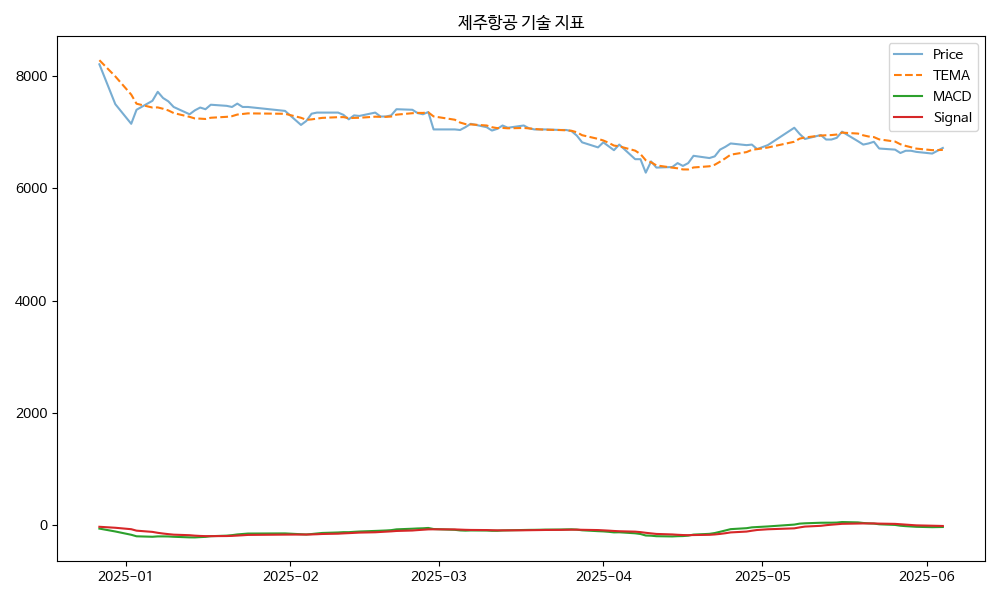 - TEMA: 현재가 6720.00, TEMA 6684.68 → 상승 흐름