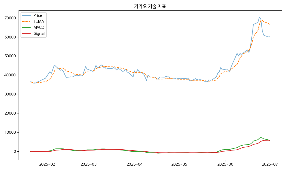 - TEMA: 현재가 60100.00, TEMA 66379.81 → 하락 흐름