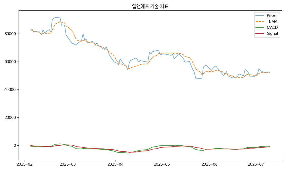 - TEMA: 현재가 52100.00, TEMA 52387.71 → 하락 흐름