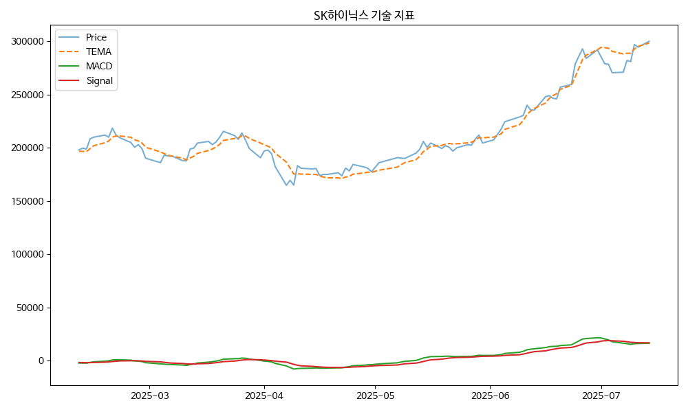 - TEMA: 현재가 300000.00, TEMA 298429.45 → 상승 흐름