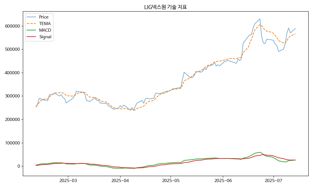 - TEMA: 현재가 589000.00, TEMA 565859.99 → 상승 흐름
