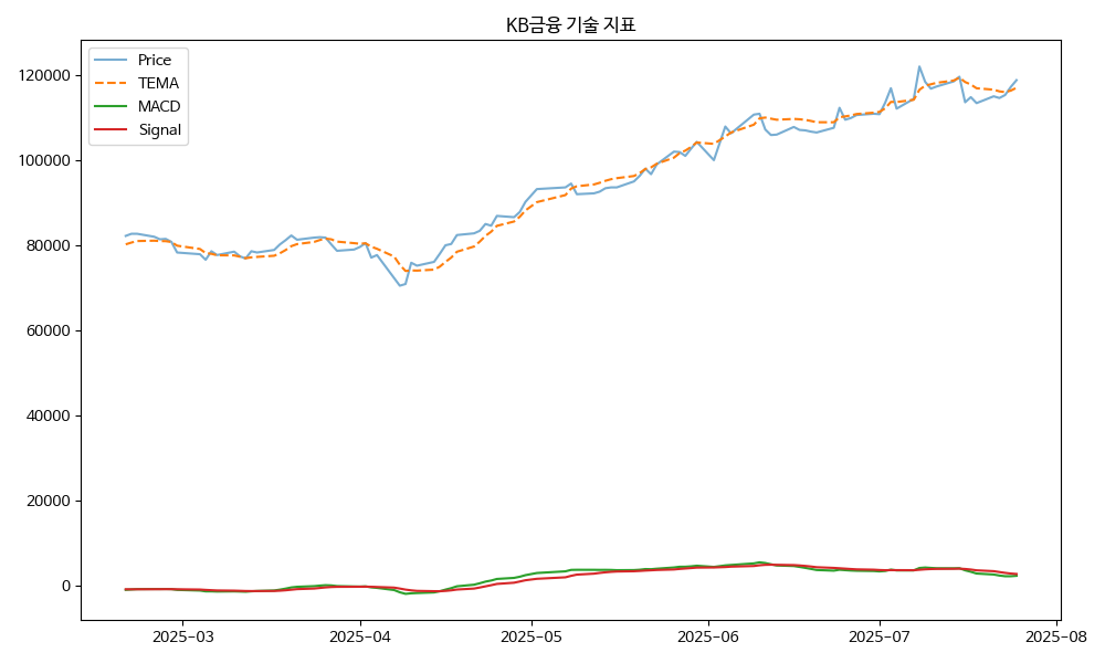 - TEMA: 현재가 118800.00, TEMA 117013.93 → 상승 흐름