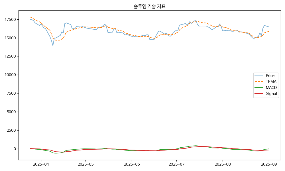 - TEMA: 현재가 16480.00, TEMA 15864.01 → 상승 흐름