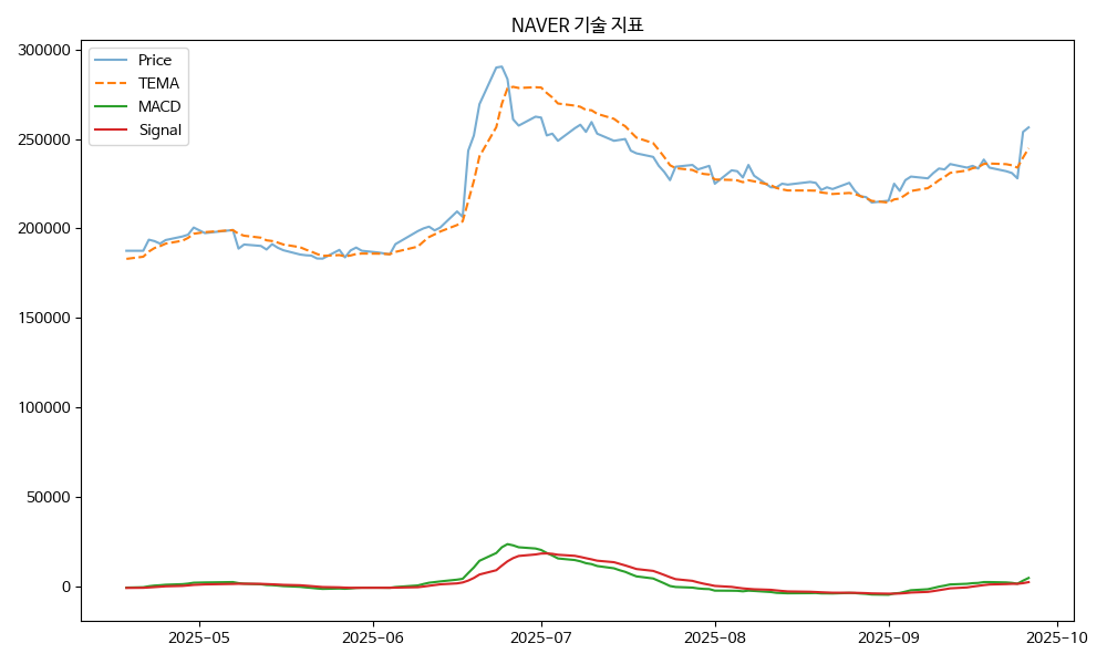 - TEMA: 현재가 256500.00, TEMA 244841.18 → 상승 흐름