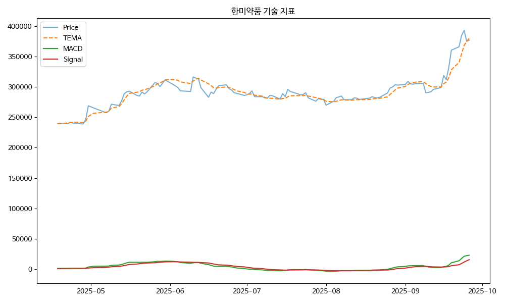 - TEMA: 현재가 377000.00, TEMA 380096.16 → 하락 흐름