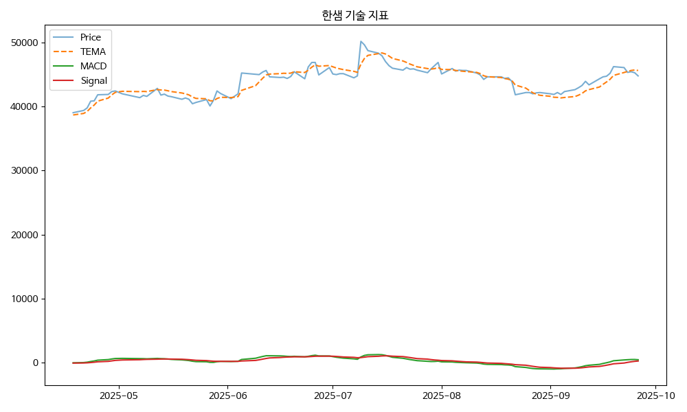 - TEMA: 현재가 44800.00, TEMA 45646.77 → 하락 흐름