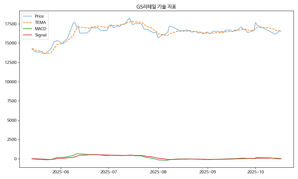 - TEMA: 현재가 16550.00, TEMA 16560.73 → 하락 흐름