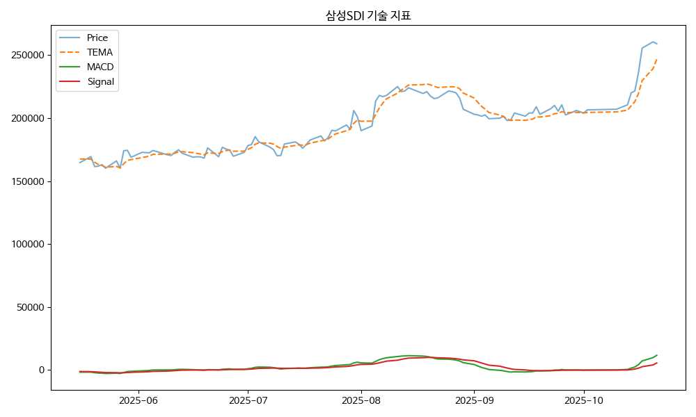- TEMA: 현재가 259000.00, TEMA 246633.80 → 상승 흐름