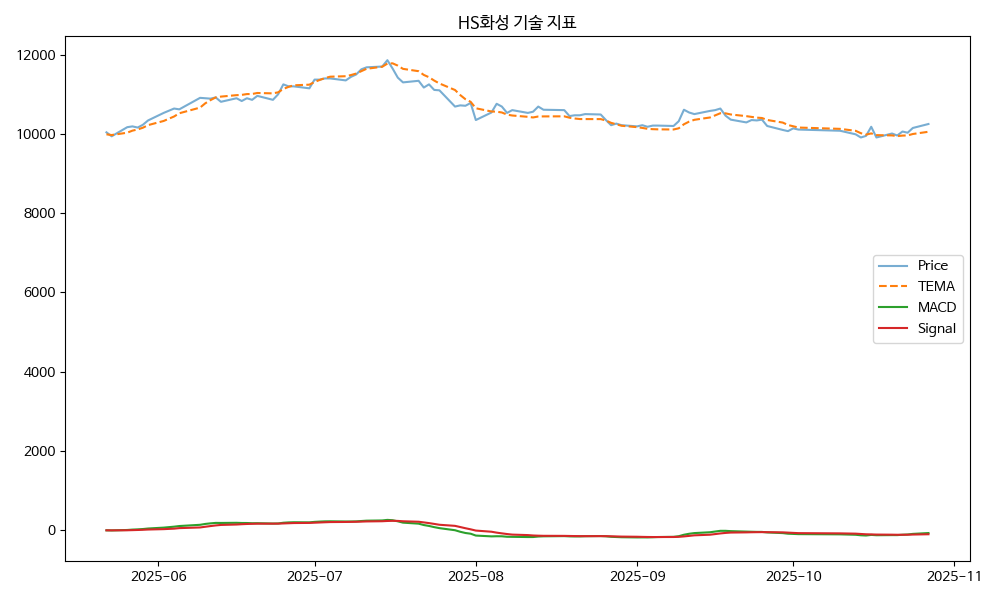 - TEMA: 현재가 10250.00, TEMA 10054.32 → 상승 흐름