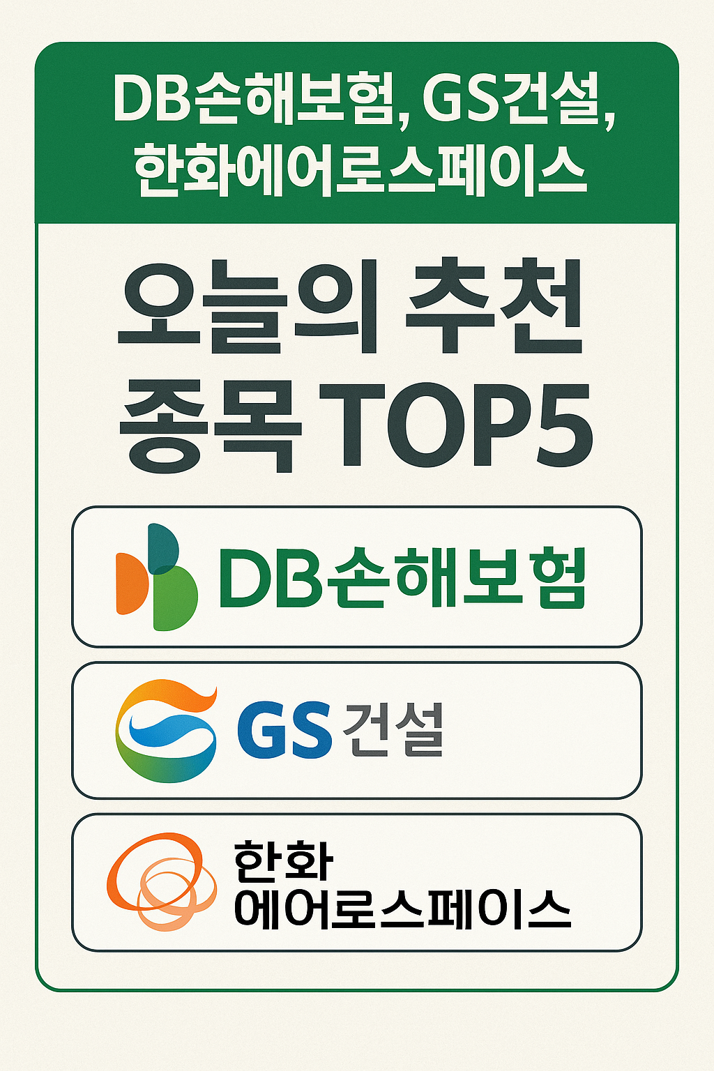 [TINA 투자리포트] 25년 5월 29일 추천 종목은 DB손해보험, GS건설, 한화에어로스페이스