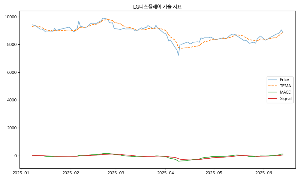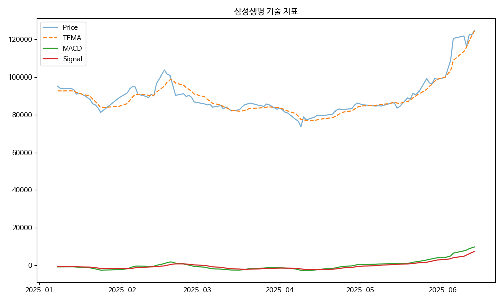 - TEMA: 현재가 208500.00, TEMA 205636.76 → 상승 흐름