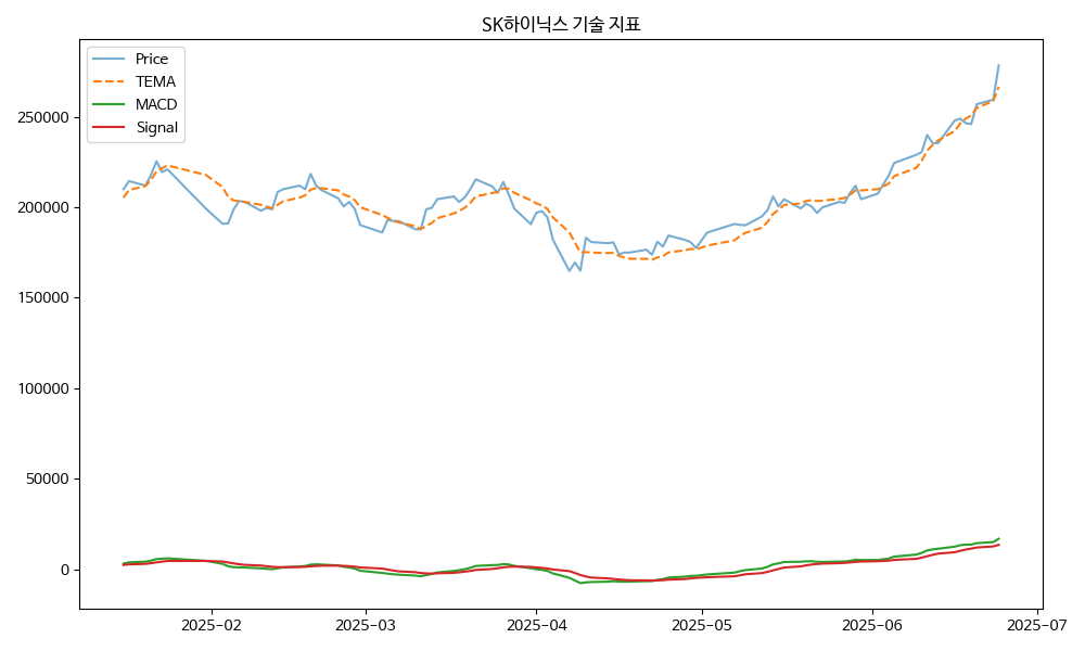 - TEMA: 현재가 278500.00, TEMA 266588.72 → 상승 흐름