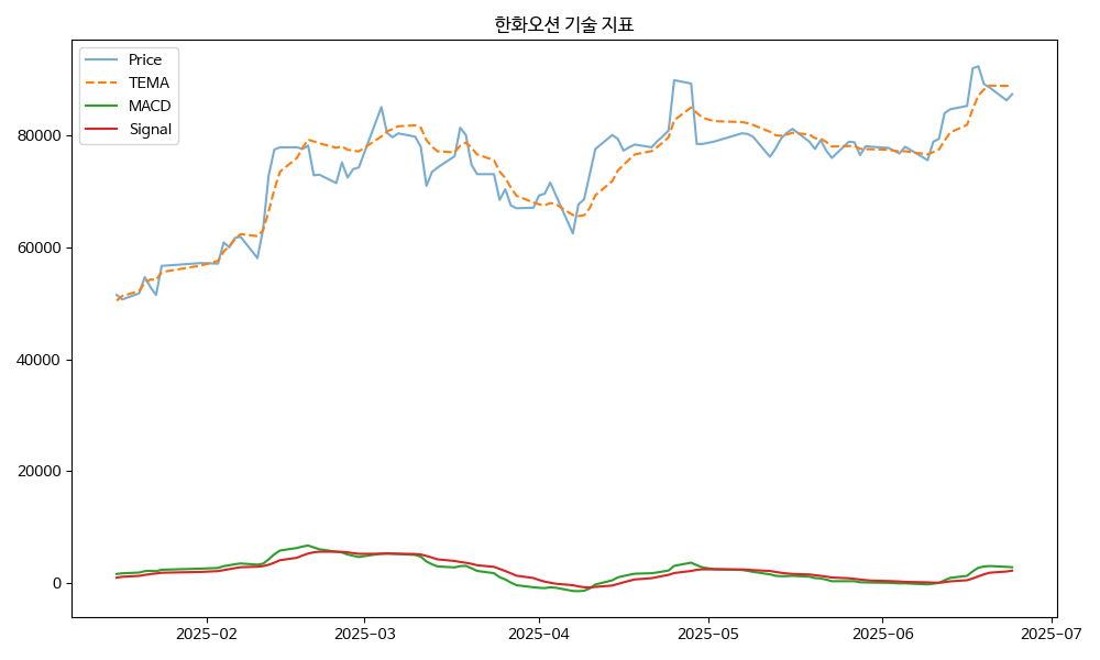 - TEMA: 현재가 87400.00, TEMA 89054.16 → 하락 흐름
