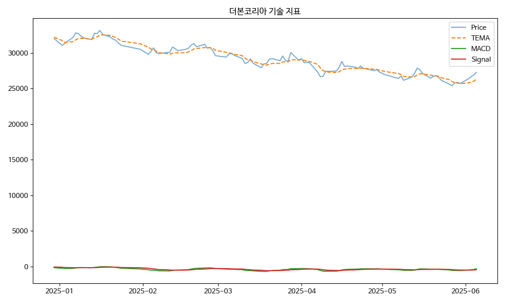 - TEMA: 현재가 224500.00, TEMA 217249.39 → 상승 흐름