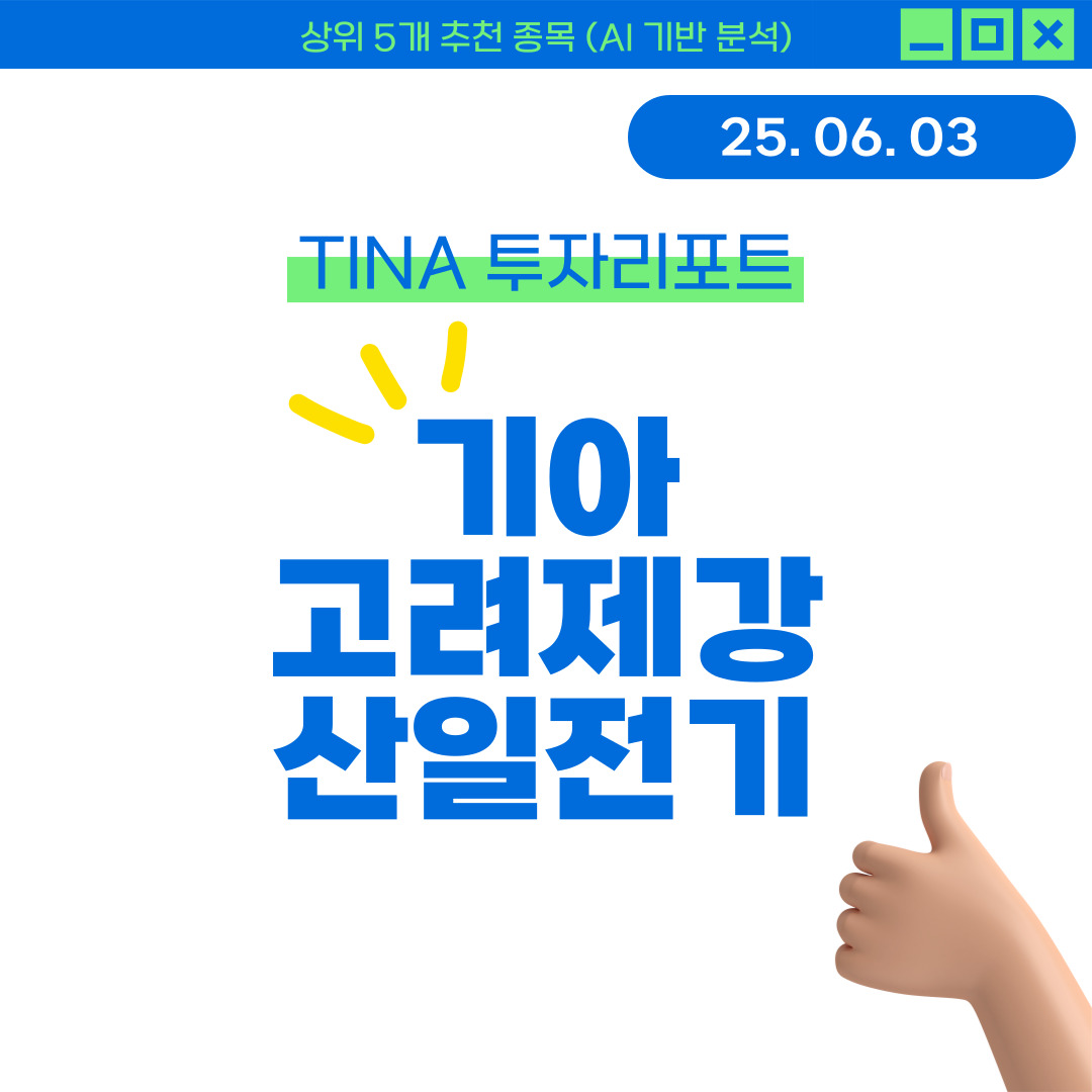 [TINA 투자리포트] 25년 6월 3일 추천 종목은 기아, 고려제강, 산일전기