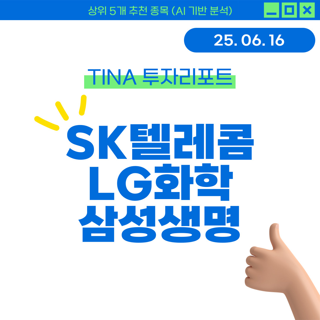 [TINA 투자리포트] 25년 6월 16일 추천 종목은 SK텔레콤, LG화학, 삼성생명
