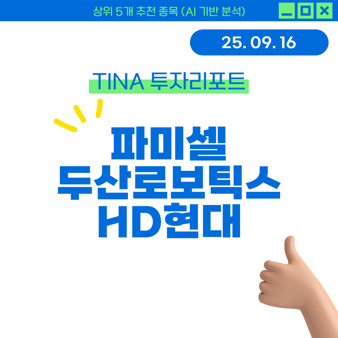 [TINA 투자리포트] 25년 09월 16일 추천 파미셀, 두산로보틱스, HD현대