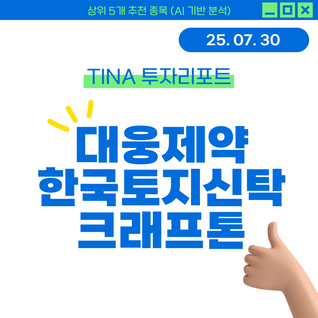 [TINA 투자리포트] 25년 07월 30일 추천 종목은 대웅제약, 한국토지신탁, 크래프톤