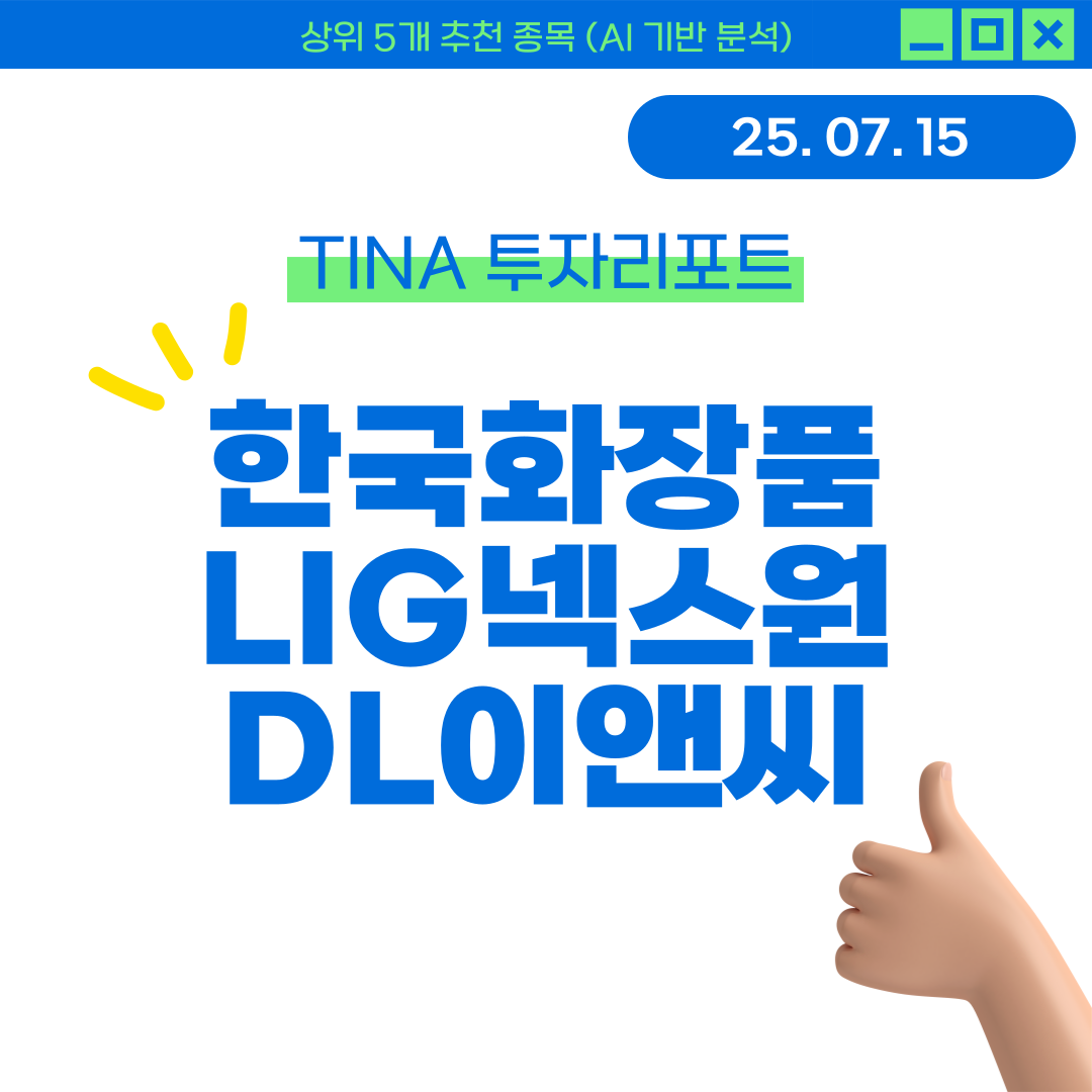 📅 2025년 07월 23일 | TINA 투자리포트📊 이 리포트는 기술적 지표 + 뉴스 감성 분석 + 머신러닝 기반 점수화로 선정된 종목입니다.📊 상위 5개 추천 종목 요약종목현재가AI 점수RSIMACD 신호시장 심리부광약품3,510원0.6834.94하락1한국항공우주89,900원0.6451.43상승1한화에어로스페이스922,000원0.6368.59상승1카카오56,500원0.6240.83하락0.68삼성전자66,000원0.5366.46상승0.62🔹 부광약품현재 주가: 3,510원보수적 매수: 3,405원공격적 매수: 3,505원보수적 매도: 3,789원공격적 매도: 3,610원손절가: 3,334원시장 심리: 1.00종합 점수: 0.68💡 AI 점수 해석: AI 점수는 평균 이상으로 투자 고려 가치가 ..