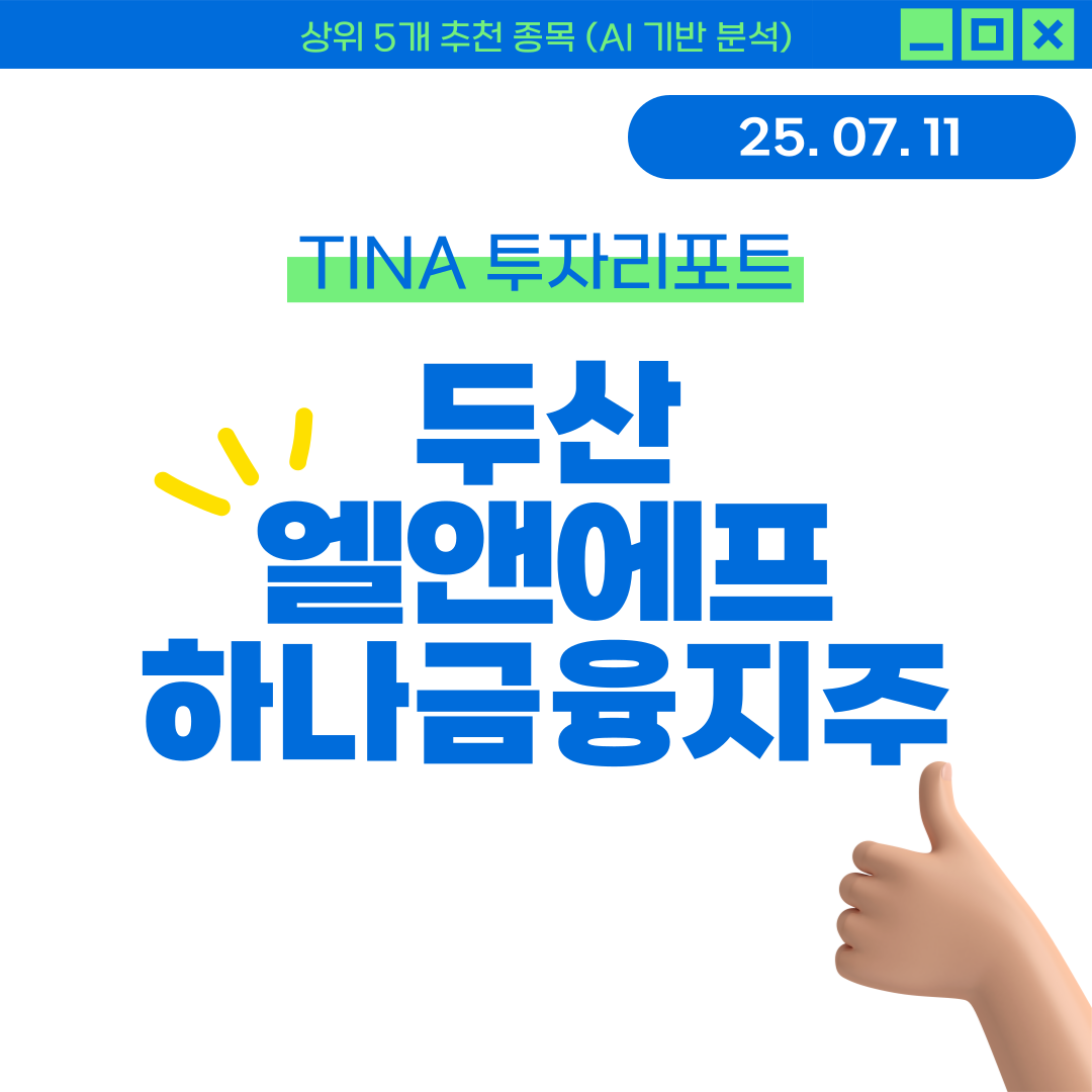 [TINA 투자리포트] 25년 07월 11일 추천 종목은 두산, 엘앤에프, 하나금융지주
