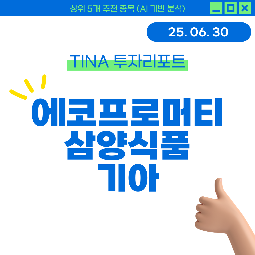 [TINA 투자리포트] 25년 6월 30일 추천 종목은 에코프로머티, 삼양식품, 기아