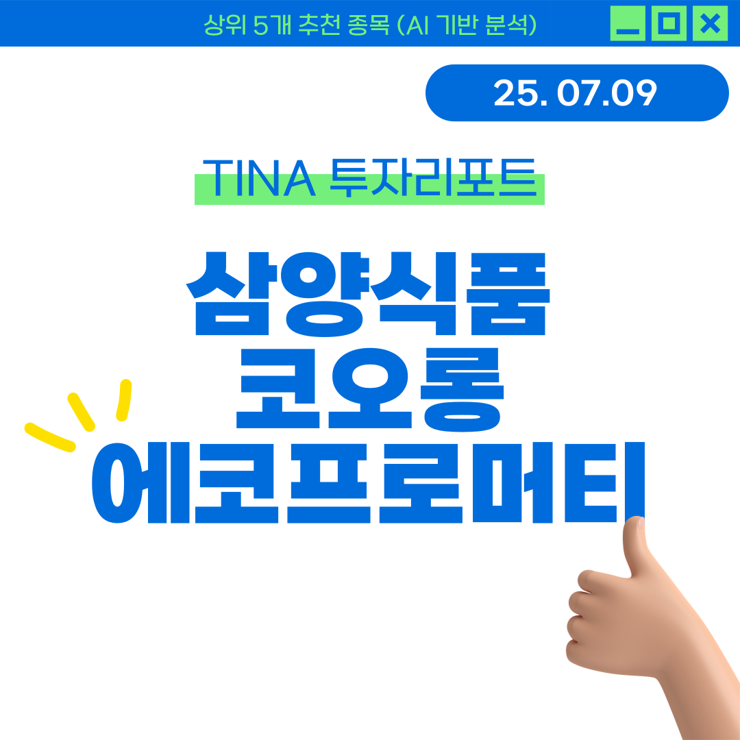[TINA 투자리포트] 25년 07월 09일 추천 종목은 삼양식품, 코오롱, 에코프로머티
