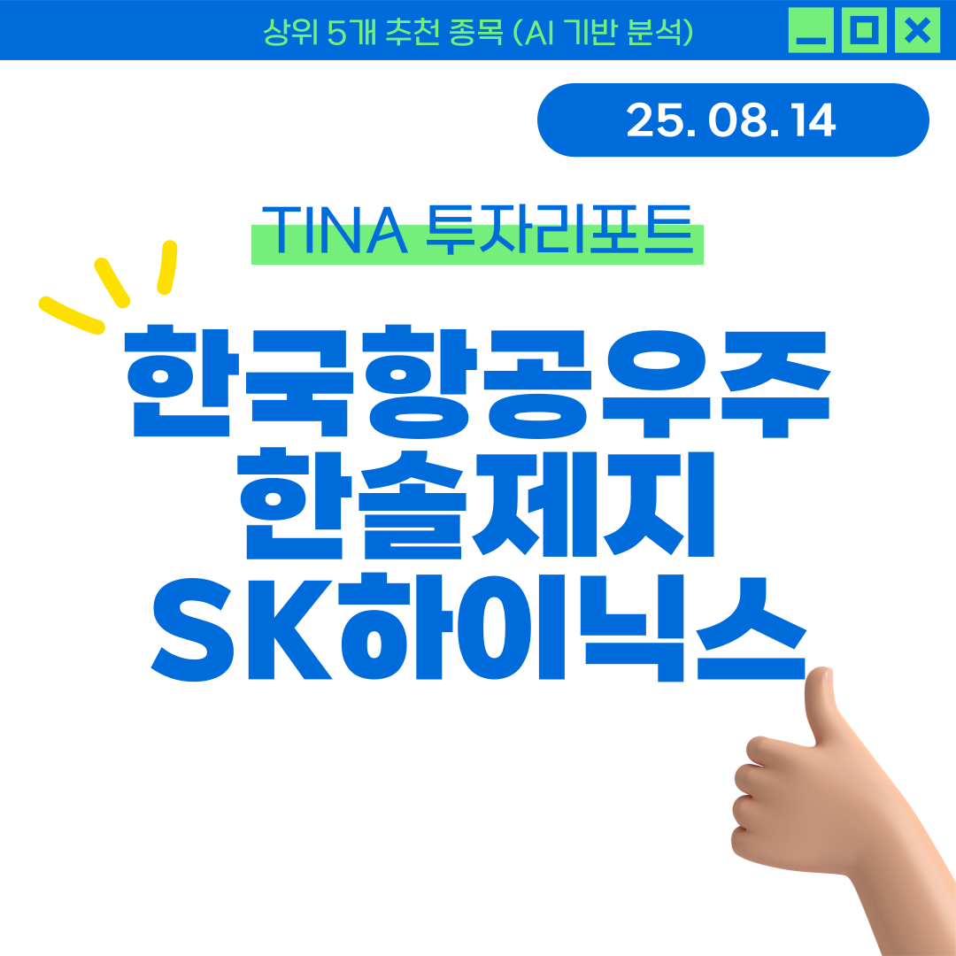[TINA 투자리포트] 25년 08월 14일 추천 종목은 한국항공우주, 한솔제지, SK하이닉스