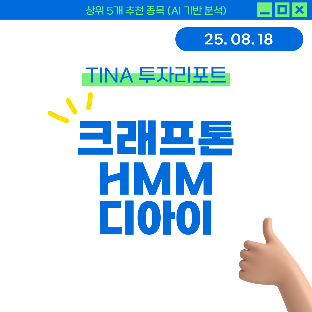 [TINA 투자리포트] 25년 08월 18일 추천 종목은 크래프톤, HMM, 디아이
