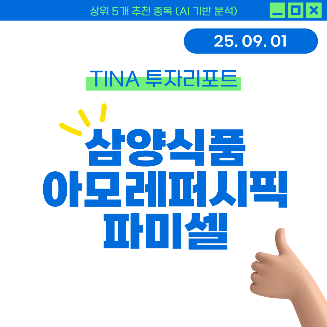 [TINA 투자리포트] 25년 09월 01일 추천 종목은 삼양식품, 아모레퍼시픽, 파미셀